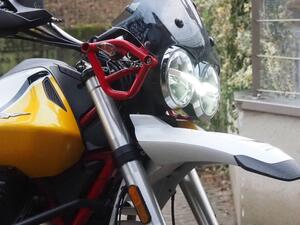 - Protezione Aerodinamica: Cupolino fumé + Parabrezza Touring maggiorato (originali Guzzi) Fornito in aggiunta al parabrezza standard. Aumenta significativamente il comfort aerodinamico sui lunghi trasferimenti.