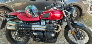Moto Triumph Street Scrambler 900 immatricolata 11/2020 7300 km, in condizioni perfette, da vetrina, tagliandi regolari ufficiali, revisione appena fatta, pneumatici 80%, accessoriata come foto, griglia faro anteriore, frecce led, portapacchi, cupolino.
