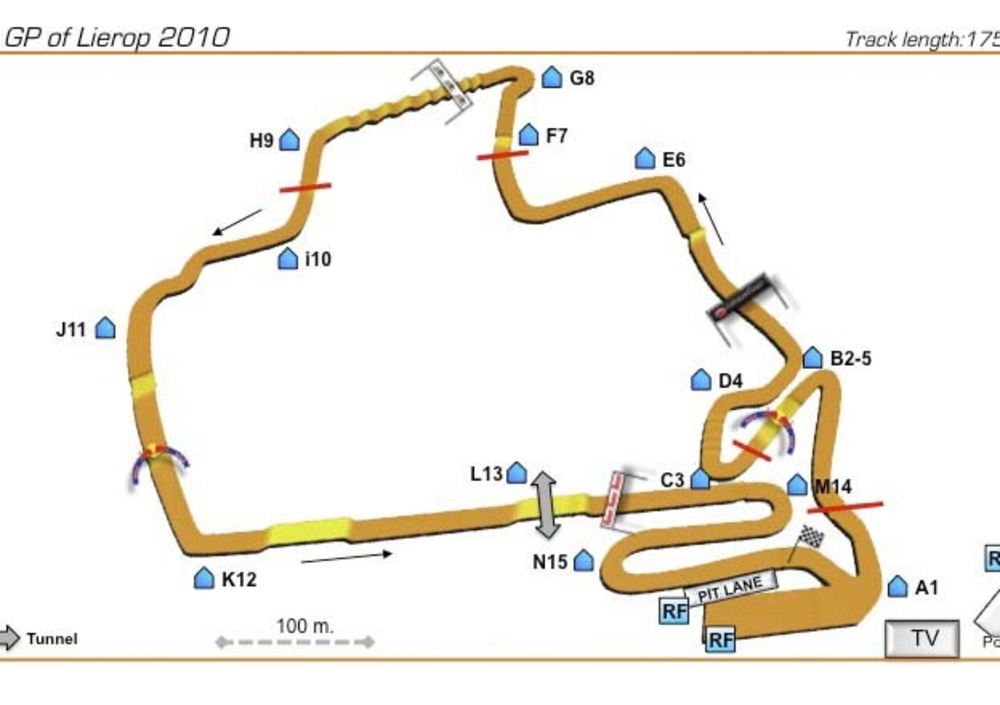 La pista qui mi piace più di quella di Lommel perché è più veloce e ci sono tante curve a novanta gradi. La partenza è un po’ più dura (compatta, ndr) del resto della pista perché la fanno sull’erba dove non si gira durante l’anno. Poi c’è una a curva sinistra che porta subito su una chicane veloce. Qui c’è proprio uno stacco tra partenza e pista: si passa dal tratto veloce a un pezzo già molto bucato e infatti in gara qui ogni tanto c’è anche qualche mucchio. Comunque c’è questa chicane veloce che poi porta ad una curva a sinistra che ti porta indietro di 180°…