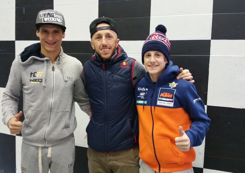Infatti proprio oggi lo abbiamo incontrato sulla pista di Ottobiano, premuroso e simpatico con due giovanissime promesse del Cross: Joakin Furbetta e Gianluca Facchetti. Tutti insieme per un photoshooting per Red Bull.