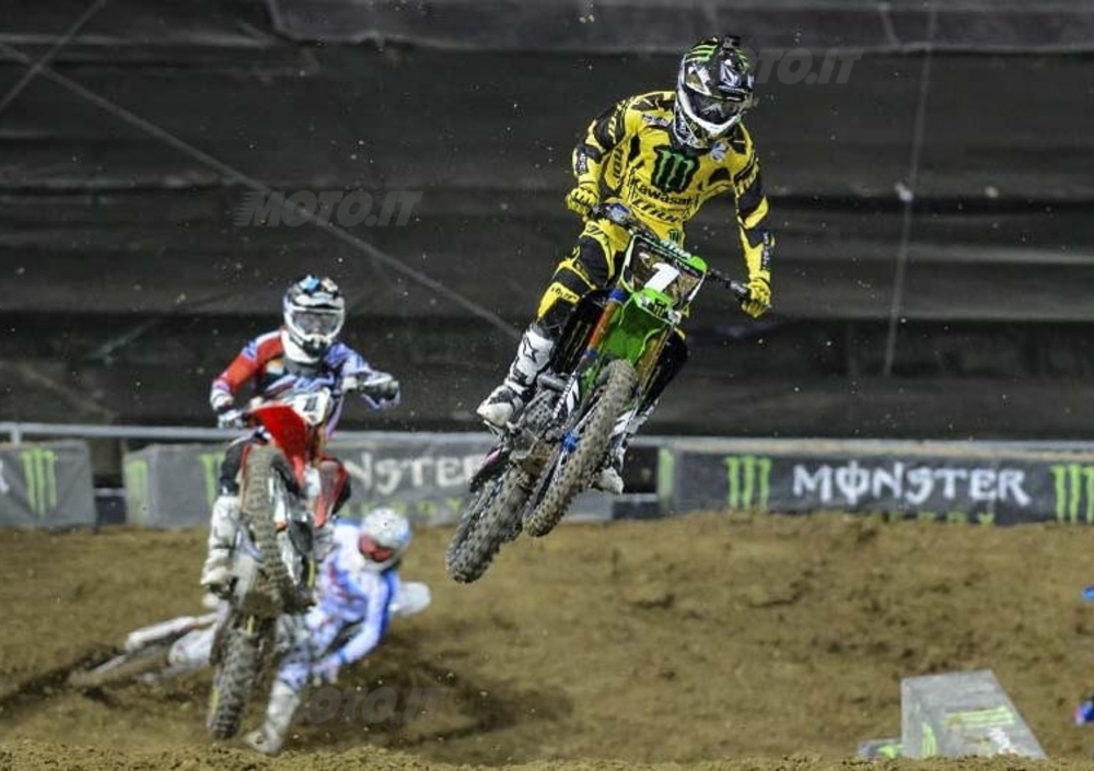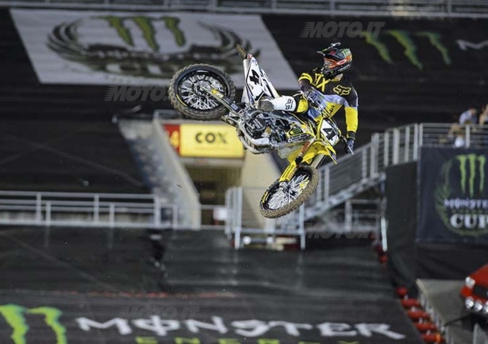 Con un primo e due secondi posti il pilota della Honda Muscle Milk Justin Barcia si è assicurato il favoloso montepremi di 100.000 dollari della seconda edizione della Monster Energy Cup disputata nel Sam Boyd Stadium di Las Vegas nel circuito disegnato da Ricky Carmichael, e che metteva addirittura in palio un milione di dollari per il pilota capace di vincere tutte e tre le manche dell’evento.