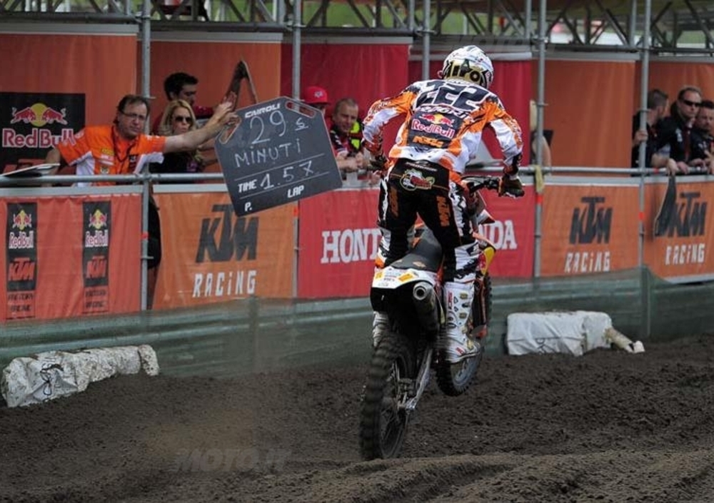 La superiorità di Antonio Cairoli è stata così schiacciante da rendere perfino noiosa la prima manche della classe regina, dove è partito in testa e ha fatto gara se fino al traguardo. Alle sue spalle ha chiuso David Philippaerts, rinvenuto dall'8° posto, Steve Ramon e un Max Nagl piuttosto sottotono. Bene invece Davide Guarneri, terminato 7° dopo aver recuperato alcune posizioni, e Manuel Monni 13°. Sfortunato invece l'ufficiale Clement Desalle uscito presto di scena per la lussazione di una spalla.