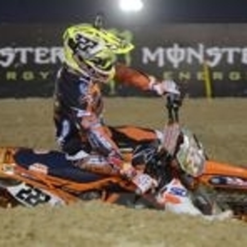 Un quasi contatto alla partenza della manche MX1 è costato ad Antonio Cairoli sia la vittoria del primo GP della stagione che il comando del campionato. Dall’ultima posizione nella quale si è ritrovato, Tony ha fatto vedere di che pasta è fatto rimontando sino alla terza piazza, per poi fare terra bruciata nella nuova Superfinale che quest’anno si disputa solo nelle trasferte extraeuropee ma che della 2014 si correrà in ogni appuntamento iridato.