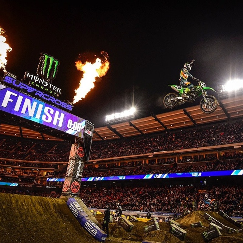 Quando si tratta di esibizioni gli americani non sono secondi a nessuno. Ecco gli scatti più belli di tutto quello che succede fuori dalla pista dell'SX, dove a farla da padrone sono i fuochi d'artificio e la musica. Il Supercross di Anaheim-II è stato un show per il duello tra Eli Tomac e Ken Roczen, ma anche un momento di grande intrattenimento