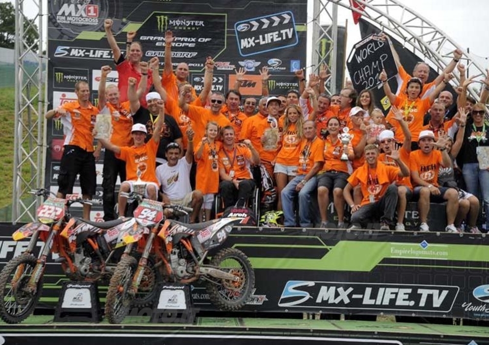 La gioia e l'orgoglio di due campioni e dei loro team che in un solo giorno chiudono vittoriosamente entrambe le classi del Campionato del Mondo di Motocross!