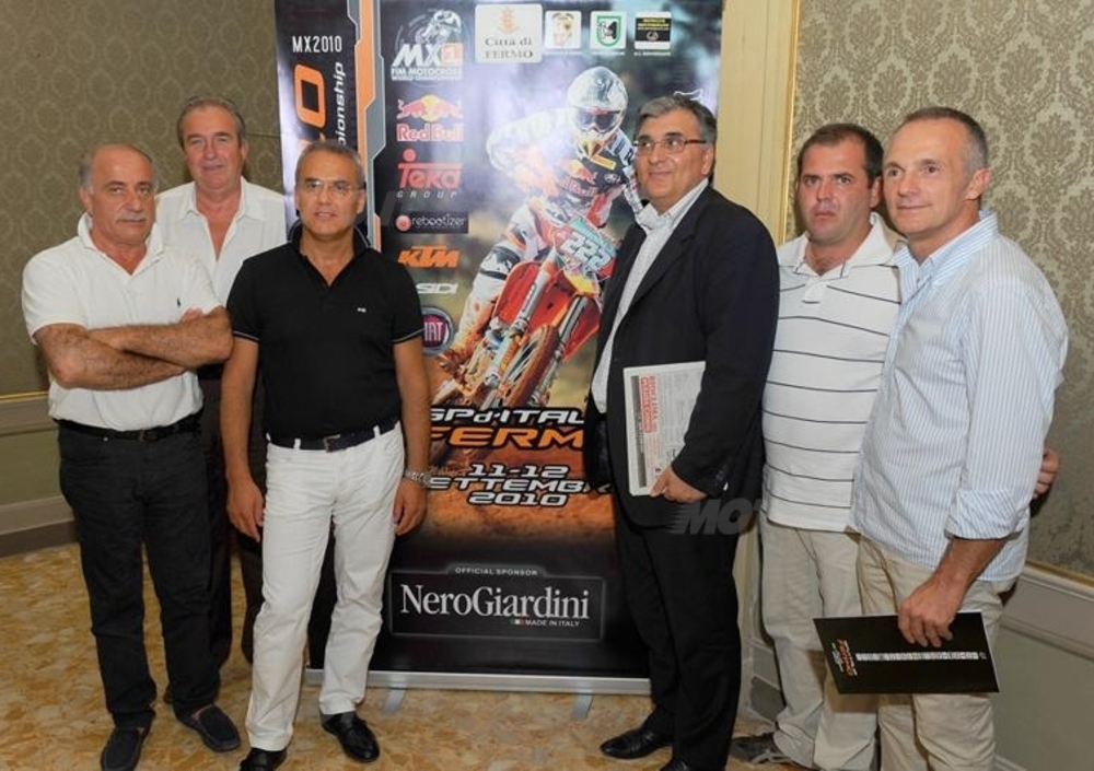 - la presentazione del GP : da sinistra: Edgardo Romagnoli (Assessore all sport del Comune di Fermo), Giuseppe Bartolucci (Presidente Comitato Regionale Marche F.M.I.), Enrico Bracalente (Amministratore unico BAG S.p.A. gruppo NeroGiardini), Saturnino Di Ruscio (Sindaco del Comune di Fermo), Giovanni Braconi (presidente del Moto Club Monterosato), Franco Perfini (5 volte campione Italiano Motocross).