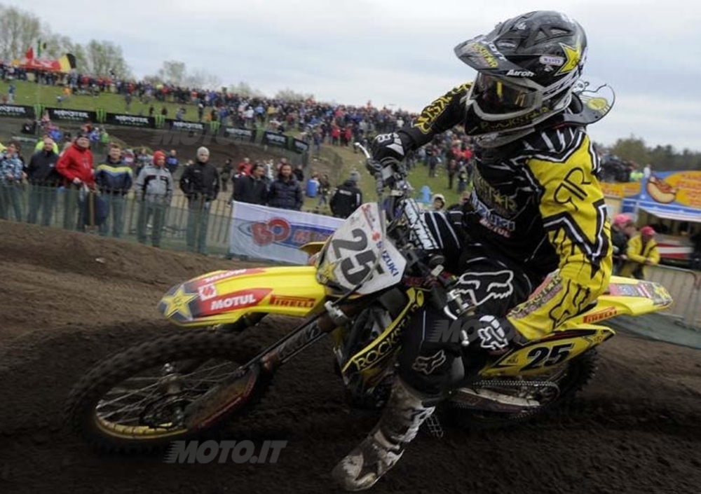 Ben diversa la corsa dello scatenato Herlings, che dopo essere partito oltre la decima posizione è riuscito a scivolare e ugualmente a passare al comando al quinto passaggio per poi rifilare la bellezza di 25 secondi al compagno di scuderia Jeremy Van Horebeek che ha concluso al posto d’onore davanti a Tommy Searle e a Jake Nicholls; sfortunato Alex Lupino, 27° dopo essere caduto alla partenza e anche al primo giro. Male gli altri azzurri, terminati oltre la trentesima posizione.