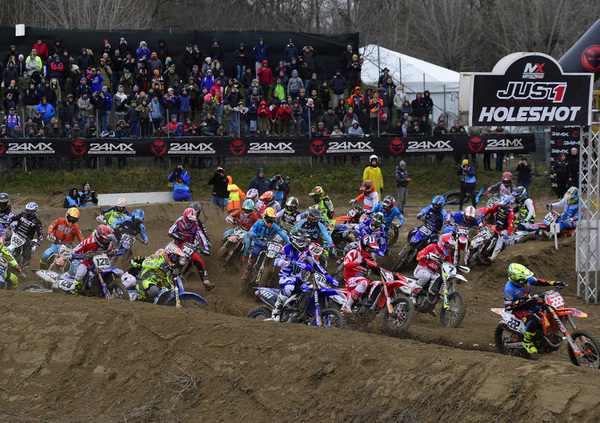 La MX2 ha registrato subito un colpo di scena che ha cambiato le sorti del titolo. Al termine del rettilineo di partenza, tra i tanti piloti finiti a terra c’è stato anche il leader Maxime Renaux, che si è rialzato con la leva del cambio rotta e quindi impossibilitato a difendere la sua tabella rossa, passata così a Michele Cervellin al quale è bastato il sesto posto per assicurarsi il titolo. La gara è andata all’ottimo pilota HRC Calvin Vlaanderen, che al primo passaggio ha scavalcato definitivamente lo svedese Alvin Ostlund il quale si è assicurato il posto d’onore finale davanti all’olandese e a Renaux.