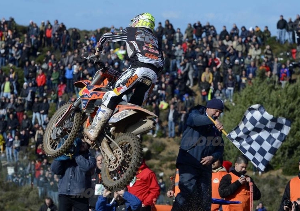 Quello di Cairoli è stato un ottimo banco di rodaggio che ha confermato quale sia il livello già raggiunto dopo pochi mesi di preparazione, e quello della sua KTM 350 che ha sfoggiato un mono WP ad aria privo di molla esterna simile a quello che usa Ryan Dungey negli Stati Uniti. In entrambe le manche il sei volte iridato si è lasciato alle spalle De Dycker, a suo perfetto agio sulle dune del circuito sardo. La pista ha fatto vedere di avere buone credenziali per poter aspirare un giorno ad avere un gran premio del campionato, considerata anche l’inaspettata risposta del pubblico.