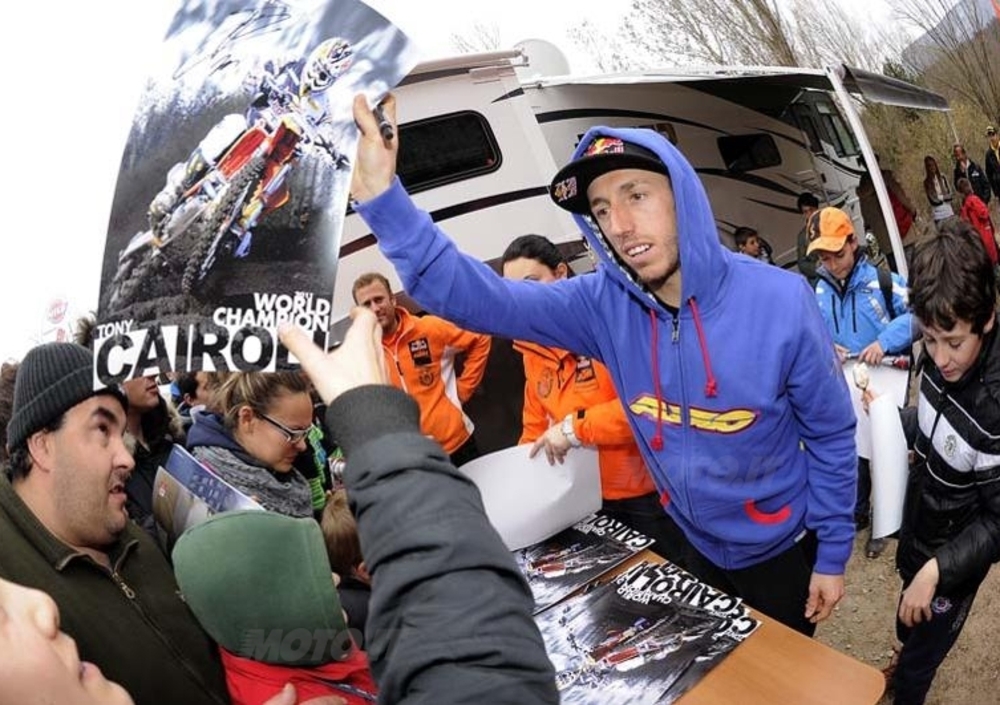 Giornata piuttosto sofferta invece per Antonio Cairoli (ascolta la sua intervista), che non è riuscito a fare meglio di terzo in entrambe le manche. In apertura era partito in testa ma prima è stato vittima nel corso del terzo passaggio di una scivolata causata dall’indurimento degli avambracci e poi è stato rallentato da un sasso incastratosi tra pinza e disco del freno anteriore; in quella successiva, l’unica valida ai fini della classifica del campionato, è spuntato di nuovo in testa ma un allungo un pò eccessivo lo ha indietreggiato in sesta posizione dalla quale non ha rimontato facilmente. Ai fini della classifica finale ora Tony si trova staccato di 105 punti dal capoclassifica e di 65 punti da Philippaerts per cui pur contando sul fatto che il regolamento prevede di poter scartare un risultato d’ora in poi dovrà cercare di non compiere errori di alcun genere se vuole sperare di intascare i 60.000 Euro destinati al primo classificato della Elite.