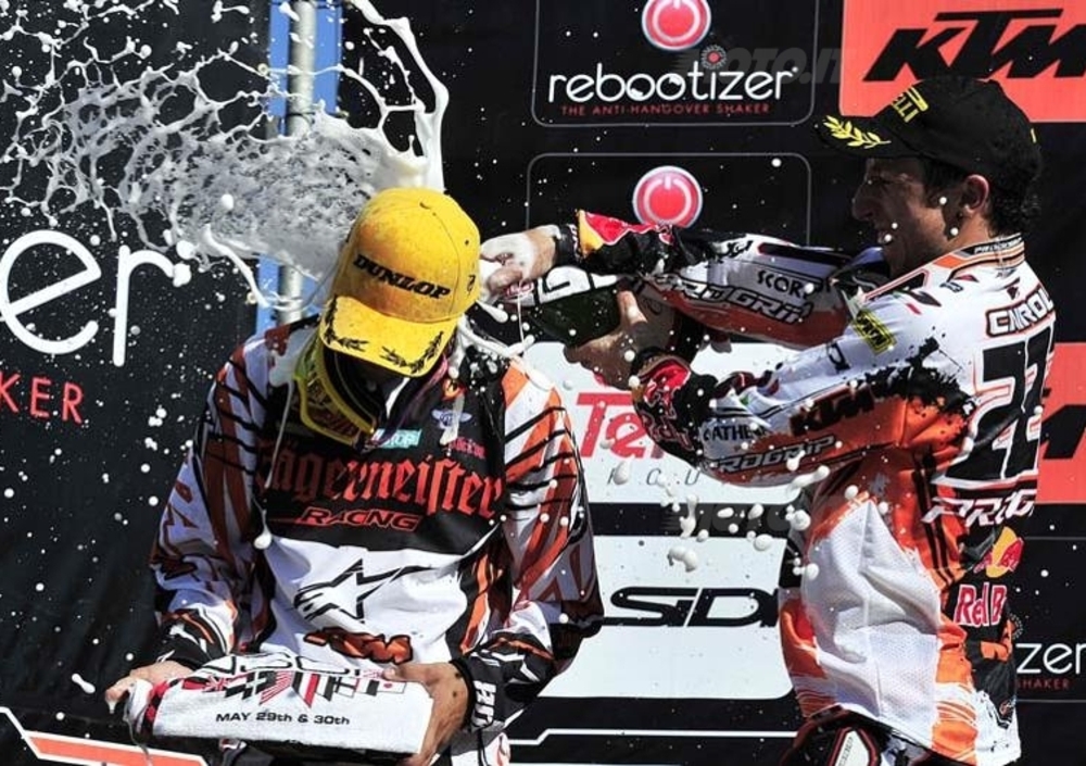 «Oggi la gara è stata davvero faticosa. La pista, che già è velocissima, si è scavata tanto e Mike (Alessi, ndr) era davvero rapido. Nella prima manche, dopo circa 20 minuti, all'atterraggio da un salto ho perso la leva del cambio e ho proseguito la corsa con la sola terza marcia. E' stato faticosissimo, ho dovuto usare molto la frizione perché qui ci sono salite lunghissime e buche profonde. E poi c'era Mike, che andava davvero veloce. ».