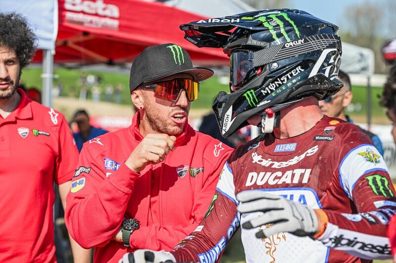Tenere banco sin dalle prime battute non è facile, per lo meno nei termini della gestione emotiva che inevitabilmente si sovrappone a quella agonistica. Tony Cairoli al box e Alessandro Lupino in pista è il filamento incandescente del flash che accende la stagione. Si ha, dunque, un bel dire che per Ducati la stagione agonistica dell’Italiano altro non è che la prosecuzione del programma di test per lo sviluppo della nuova Desmo450 MX. Quand’anche per l’occasione si potesse decidere di eliminare i tabelloni dei tempi ci sarebbe sempre qualcuno con la sveglia in mano a mandare i buoni da una parte e i cattivi dall’altra. Così l’avvocato è sempre il cronometro. E il giudice supremo… il giudizio dei tifosi. Niente paura, Ducati ha soddisfatto l’uno e gli altri. Alessandro Lupino, che a dispetto del cognome accomodante è un marcantonio da rissa, non si fa pregare, ed è Super Pole MX1. Jan Pancar, KTM è secondo, Giuseppe Tropepe, Honda, terzo. Vale la pensa di fermarsi qui, di andare in sospensione e di lasciarsi prendere da un’impazienza breve. Domenica i cancelletti sbatteranno giù, e il clangore del ferro sarà divorato dalla musica di uno start in qualche modo storico.