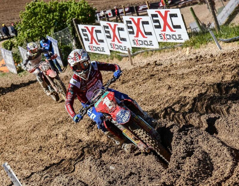 Gran lavoro di ruspe e benne, rimettere la pista in uno stato di decenza è l’impegno ammirevole degli organizzatori del glorioso e incontenibile Moto Club Fagioli. Si riparte, ma sotto il manto di terra c’è ancora fango, e sotto ancora sassi. Il tempo migliora, ma non le linee sui canaloni, delicatissime. MX1. Si cambia e si torna all’indice del Campionato suggerito a Mantova. Partenza bellissima di De Bortoli e Pancar, arriva subito anche Emilio Scuteri, poi la gara si distende avvincente. Pancar va via, Gifting recupera e si fa sotto. Ben presto vincente e piazzato sono in chiaro, ma il duello appassionante va avanti fino alla fine, la spunterà Pancar ma solo nel finale, il terzo posto è ancora da distillare.