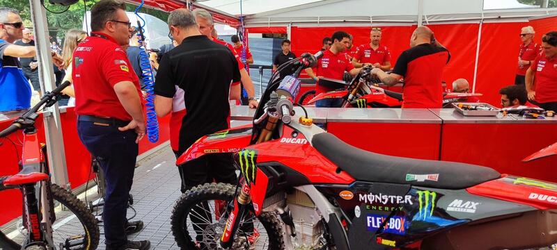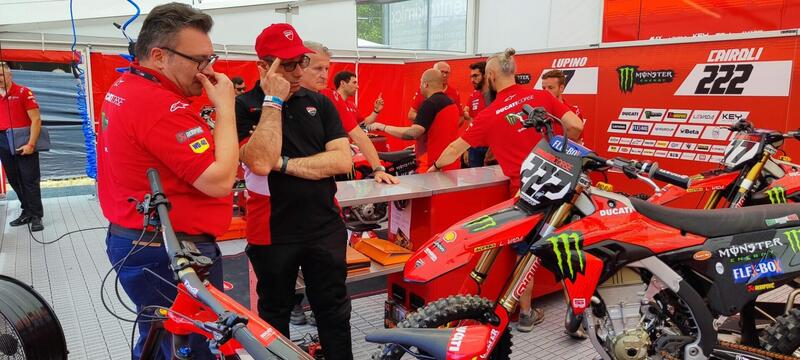 A volte sembra che questa attenzione sia un pelo pretestuosa, che nasconda l’emozione generale. Così è. Fior di professionisti, abituati a mille battaglie dello Sport, “sentono” il momento. Paolo Ciabatti, il Direttore, lo sente. “Ci avviciniamo al momento…” non dice altro, ma il trasporto, il coinvolgimento, è avvertibile. Davide Perni, fantastico trait-d’union del nuovo “sistema” ramo off-road con il fusto centrale della quercia Ducati, conferma: “Siamo tutti tesi. Più che tesi, emozionati. È un evento nell’evento, una data che aspettavamo da tempo e che segna, evidentemente, l’acquisizione di un altro passo avanti.”