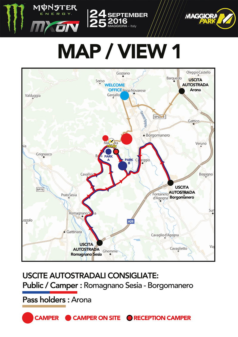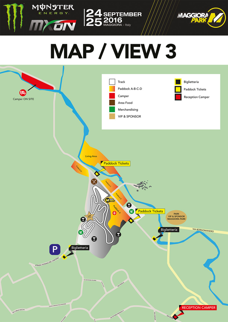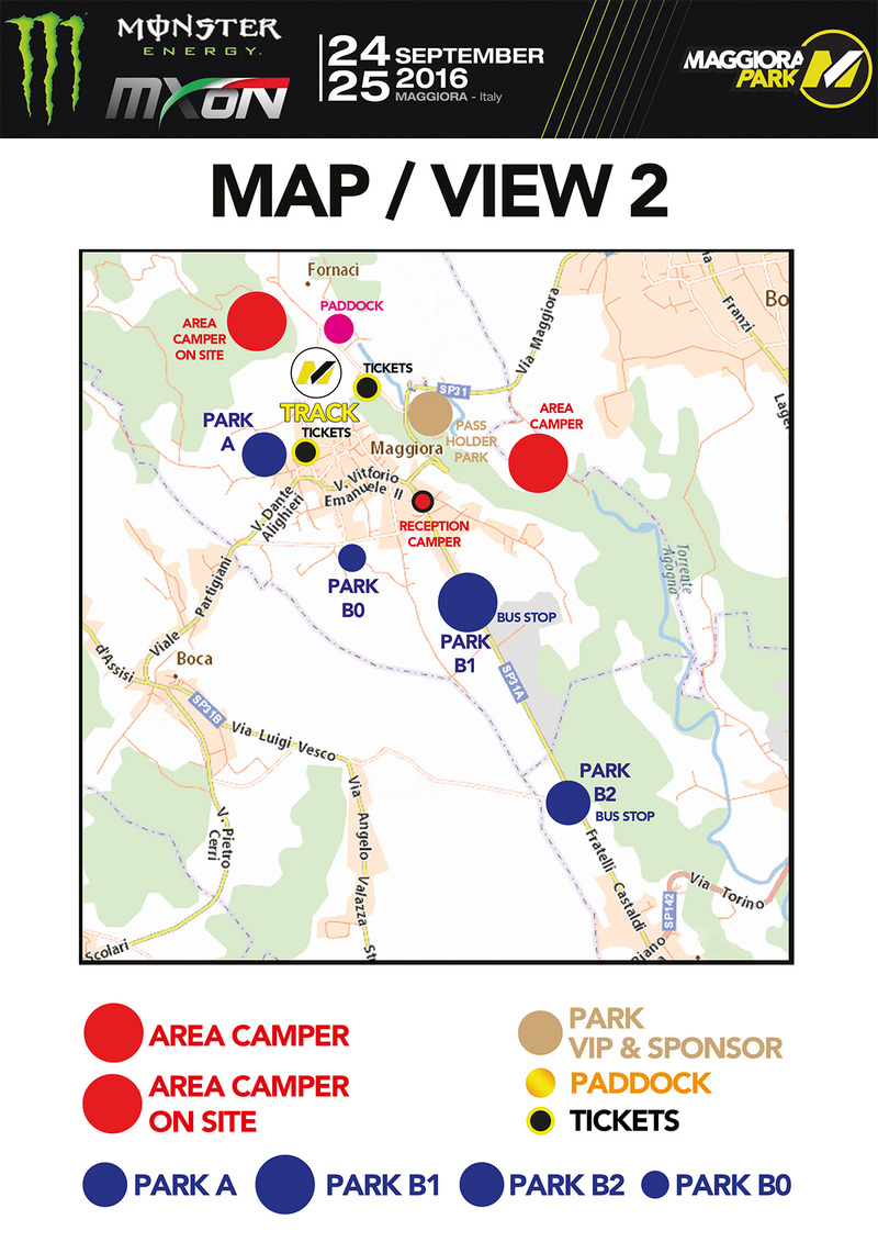 Per l’MXoN 2016 ci sono due biglietti camper: il biglietto “camper onsite”permette l’accesso ad un’area con sorveglianza dedicata, più vicina al circuito e con servizio navetta disponibile. Il biglietto “camper” permette invece l’accesso all’area camper tradizionale distante 800 metri dal circuito e presso la quale verranno organizzati durante tutto il week end eventi musicali e altri tipi di entertainment.