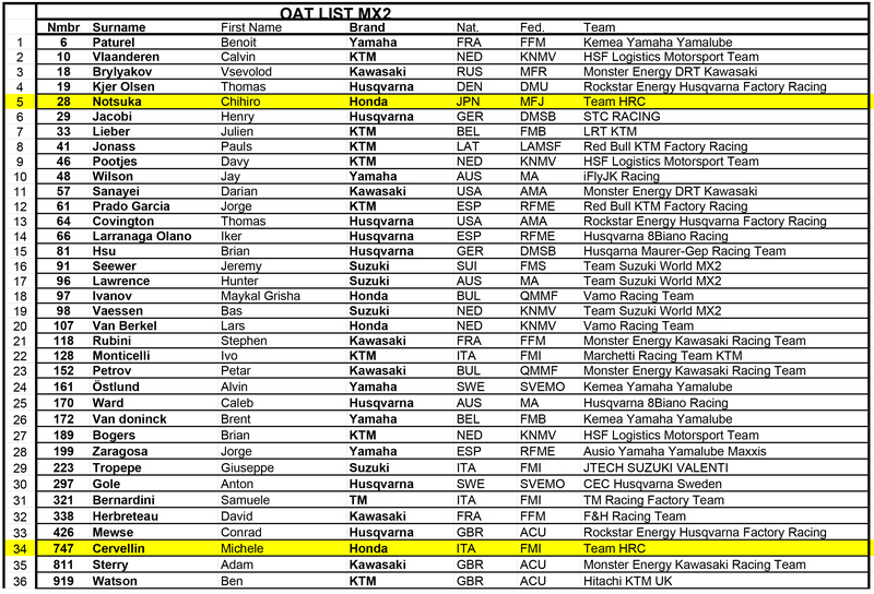 Sono 37 le squadre iscritte, tra MXGP e MX2, alle quali è stato dato il benestare per portarsi al via dell’imminente Campionato del Mondo di Motocross che prenderà il via a Losail (Qatar) il prossimo 25 febbraio.