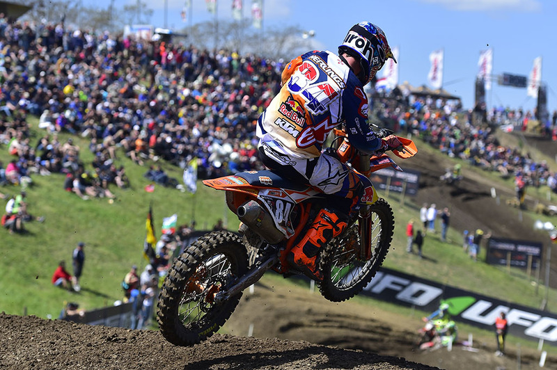 Nella prima manche ha avuto la meglio su Gajser dopo un iniziale scambio di posizioni, nell’altra sul russo Evgeny Bobryshev che si è assicurato la terza posizione nonostante abbia corso con l’ausilio di antidolorifici a causa del lancinante dolore alla spalla dovuto alla caduta di Kegums. La seconda piazza è andata a Gajser, che pur avendo una giornata difficile culminata con una caduta nella seconda manche che però non gli ha impedito di finire 4°, per otto punti ha scalzato Romain Febvre dal ruolo di leader MXGP.