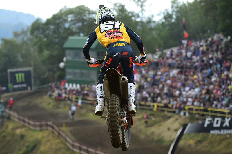 Partiti alla pari, Pauls Jonass e Jorge Prado si sono contesi la tabella rossa della MX2, che è finita in mano allo spagnolo grazie ad una consistente prestazione che lo ha visto terminare prima 3° e poi 1°, e che lo ha premiato col gradino più alto del podio. L’ex leader lèttone non è invece riuscito a fare meglio di 4° e 5°, chiudendo la 14ª tappa al 4° posto e ritrovandosi così a inseguire l’iberico distanziato di 11 lunghezze.