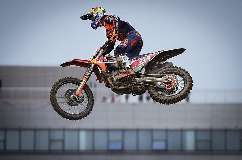 Il primo a farne le spese è stato il fresco campione del mondo Tim Gajser, che, dopo essere stato il più veloce nelle prove cronometrate ed essere partito al comando della qualifica 450, nel corso del primo giro è scivolato ed è caduto anche in quello successivo, ritrovandosi a rincorrere il gruppo col ruolo di fanalino di coda, chiudendo la manche all’11° posto.