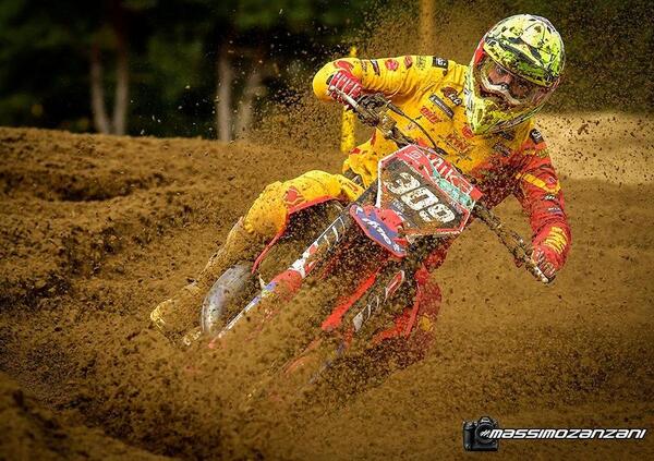 Dopo tre doppiette consecutive per Mattia Guadagnini è arrivato il momento di doversi inchinare al capoclassifica della 250 che sulla ingrata sabbia di Lommel ha firmato la sua doppia vittoria stagionale. Il pilota della Husqvarna Maddii Racing aveva aperto la nona tappa stagionale con un buon secondo posto ottenuto con una decisa serie di sorpassi, ma a pesare sulla sua successiva prestazione è stata prima una caduta nelle prime fasi della gara ma soprattutto l’appannamento degli occhiali che ha fortemente limitato il suo passo finché non se ne è sbarazzato.