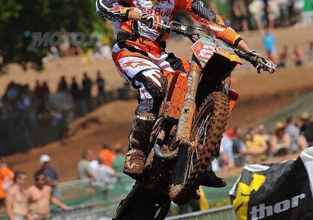 La sorpresa maggiore è stata quella di trovare vestito di tutto punto, con i colori del team ufficiale KTM, il francese Marvin Musquin che, improvvisamente ma non molto, è migrato dal Team NGS Honda a quello factory KTM per questioni non meglio precisate. Ovvio che le due parti reclamino ragione. Il pilota da una parte che contestava la possibilità di non poter difendere al meglio la tabella rossa conquistata sul campo a suon di risultati per oggettive difficoltà da parte del Team di supportarlo in maniera adeguata, dall'altra il Team che invece reclama il fatto di essere perfettamente in grado di fornire il necessario supporto al pilota. Dato di fatto che KTM non si è lasciata sfuggire questa ghiotta occasione per poter rimpiazzare al meglio la sua prima guida, lo scozzese Shaun Simpson, infortunato e lontano dalle gare, probabilmente per il resto della stagione. Di questa situazione se ne sentirà parlare molto nel prossimo futuro dato che il team NGS gestito da Bruno Losito ha annunciato azione legale nei confronti dell'oramai suo ex pilota. Addirittura c'è chi prevede un'azione giudiziaria gia dal GP di Francia della settimana prossima dove l'autorità francese potrebbe nientemeno precludere la possibilità al pilota transalpino di proseguire l'attività agonistica con la squadra austriaca. Chi di certo di questa situazione non ne ha fatto un dramma ed anzi, ne ha sicuramente tratto giovamento, è proprio Marvin Musquin che in Inghilterra, con una perentoria doppia vittoria ha rafforzato il suo primato in classifica generale quando, proprio la settimana prossima verrà doppiata la boa di metà stagione. Una vittoria costruita e voluta fortemente da Musquin che non ha lasciato spazio agli avversari nelle due manche disputate. In gara 1 ha condotto indisturbato i venti giri dal primo all'ultimo metro mentre in gara 2, non essendo riuscito a scattare in testa al gruppo ha lasciato sfogo al connazionale Frossard ed al nuovo compagno di squadra, Goncalves, prima di passarli entrambi (in due giri) ed involarsi verso la seconda affermazione. Un'affermazione che ha portato il suo vantaggio in classifica generale a quindici punti su Gautier Paulin. Il pilota del Team BUD Racing, sembra essere uscito dal periodo "nero" e di aver risolto le problematiche che lo avevano attanagliato durante i due GP iberici di Portogallo e Spagna. Un piccolo errore in gara 2 gli ha compromesso la possibilità di contrastare Goncalves e Musquin per la vittoria e si è ritrovato al quarto posto alle spalle dell'altro transalpino Frossard. Chi durante la settimana scorsa non avrà dormito sonni tranquilli, dato l'arrivo di Musquin in squadra, è stato Rui Goncalves che si è dovuto di colpo adattare alla situazione di ritrovarsi in casa come "amico" quello che prima era un semplice avversario. Rui di avversari ne aveva macinati parecchi soprattutto negli ultimi tre GP, dove era stato capace di salire sempre a podio, ma questa volta non è riuscito ad arginare il trio francese che ha monopolizzato la premiazione in terra inglese. Un indurimento alle braccia gli ha fatto perdere posizioni nella prima manche, conclusa dal portoghese al settimo posto. Goncalves si è poi rifatto in gara 2 conquistando la posizione d'onore che però non gli è stata sufficiente per salire a podio per quella che poteva essere la sua quarta volta di seguito. Podio che invece non ha nemmeno sfiorato Davide Guarneri. Forte della terza posizione nella generale staccato di sole cinque lunghezze dal vertice, dopo la gara di Bellpuig in Spagna di due settimane or sono, Davide a Mallory Park poteva e doveva fare di più. Quarto nella prima manche ma distanziato di circa trenta secondi dal vincitore Musquin, il "pota" in gara 2 ne ha combinate di tutti i colori. Nel primo giro ha commesso una serie innumerevole di errori che, dal quarto posto iniziale lo hanno presto retrocesso in dodicesima posizione. Rientrato nella top ten, ha poi accusato un calo fisico dovuto al suo modo di guidare, non fluido e contratto, che gli ha fatto spendere energie preziose nel corso delle prime battute di gara. Decimo classificato al termine della gara, ha accusanto un ritardo di ventuno punti dal vincitore Musquin. Punti di distacco che sono saliti a 26 in classifica di campionato. Chi invece qualche buon punto è riuscito a metterlo in carniere è stato Manuel Monni che ha portato finalmente a termine due manche senza commettere errori e soprattutto senza cadere. Il perugino è apparso rinfrancato dalla quinta posizione ottenuta in gara 1 e dal nono posto di gara 2. Una bella iniezione di fiducia per Monni che da qui a fine campionato non potrà comunque più permettersi battute a vuoto se vorrà occupare una pozione all'interno dei migliori dieci al termine della stagione. Chi invece nei migliori dieci è riuscito a navigarci nelle prime fasi di campionato ma non riesce più a sfruttare il suo potenziale è Alessandro Lupino. Il viterbese, reduce dall'infortunio patito in allenamento in Belgio mentre provava le partenze (trauma cranico e gran botta alla spalla sinistra), nella qualifica di sabato è rimasto coinvolto nella caduta di Aubin che gli ha procurato un ulteriore impatto al braccio sinistro con la conseguenza che in gara è partito, ma senza riuscire a concludere le manche della domenica. Le manche le hanno concluse gli altri due giovani della pattuglia italiana, ma purtroppo al di fuori della zona punti. Marco Maddii e Deny Philippaerts non riescono ancora ad avere un ritmo di gara che gli permetta di lottare per la conquista di un posto "al sole", ovvero all'interno delle prime venti posizioni. Parlando di giovani c'è da sottolineare che dopo i due exploit del Portogallo e della Spagna, il tedesco Ken Roczen non è riuscito a continuare nella progressione di risultati che aveva impressionato tutti gli addetti ai lavori. Il quindicenne non si è trovato bene con il tracciato inglese fin dalle prove del sabato e la nona posizione assoluta di giorn