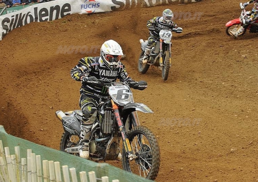 L'ottavo Gran Premio di stagione, che segna la fine del "girone di andata", è iniziato oggi sul circuito di Ernèe ad ovest della Francia. Un circuito scenografico che, con un'affluenza di pubblico numerosa fin dalla mattinata di oggi, si appresta ad avere un'ottima cornice di pubblico per le gare di domani. La qualifica della MX1, valida per determinare l'ordine di allineamento delle due manche di domani, ha visto primeggiare il belga Clement Desalle, alla sua prima pole position in carriera. Il pilota del Team LS ha guidato la gara dal primo all'ultimo giro. Alle sue spalle ha concluso un coriaceo Maximilian Nagl che è comunque riuscito a far segnare il giro veloce in gara a dimostrazione del suo potenziale. Terzo, David Philippaerts. Il campione in carica non è partito benissimo ma è stato in grado di recuperare in fretta posizioni attestandosi al terzo posto fin da metà gara. Alle sue spalle, il compagno di squadra Coppins, seguito dal francese Aranda e da Mackenzie. Settimo al termine Antonio Cairoli. Il siciliano è partito a centro gruppo ed ha recuperato posizioni fin dal primo giro ma una volta arrivato alle spalle del gruppo dei migliori ha fatto fatica a sopravanzare i suoi avversari. A dimostrazione che su questo tracciato i sorpassi non sono agevoli, è arrivato anche l'ottavo posto di Pichon che, a causa di un errore ha perso due posizioni quando era sesto, e non è stato più in grado di recuperarle. Tanel Leok e Ken De Dycker hanno chiuso nell'ordine la top ten. Nella MX2 Marvin Musquin ha dato seguito alla sua striscia di successi dopo le tre vittorie ottenute in Inghilterra. Il neo acquisto KTM ha impiegato tre giri prima di avere ragione di Anthony Boissiere che aveva conquistato una fantastica hole shot. Boissiere che nel corso della manche si è dovuto arrendere anche all'altro francese Steven Frossard che ha concluso al secondo posto. Alle spalle di Boissiere ha concluso il giovanissimo Ken Roczen, quarto, seguito da Gautier Paulin. Sesto al termine della prova Manuel Monni. Ottima la sua rimonta che dall'undicesimo posto del primo passaggio lo ha portato in quinta posizione finale. Non altrettanto ottima la prova di Davide Guarneri che ha commesso un errore nell'attaccare Van Horebeek mentre erano in lotta per la quarta posizione. Errore che ha portato entrambi alla caduta con il risultato che quando sono ripartiti erano ben oltre la ventesima posizione. Davide ha dato vita ad un buon recupero e nonostante i sorpassi non agevoli è riuscito a conquistare la tredicesima posizione. Note non positive per il resto del gruppo degli italiani. Alessandro Lupino, ancora alle prese con dolori alla spalla sinistra ha concluso ventinovesimo mentre Marco Maddii ha terminato trentaduesimo e Deny Philippaerts trentaquattresimo. Domani le gare inizieranno con al prima manche della MX2 prevista per le ore 12.10