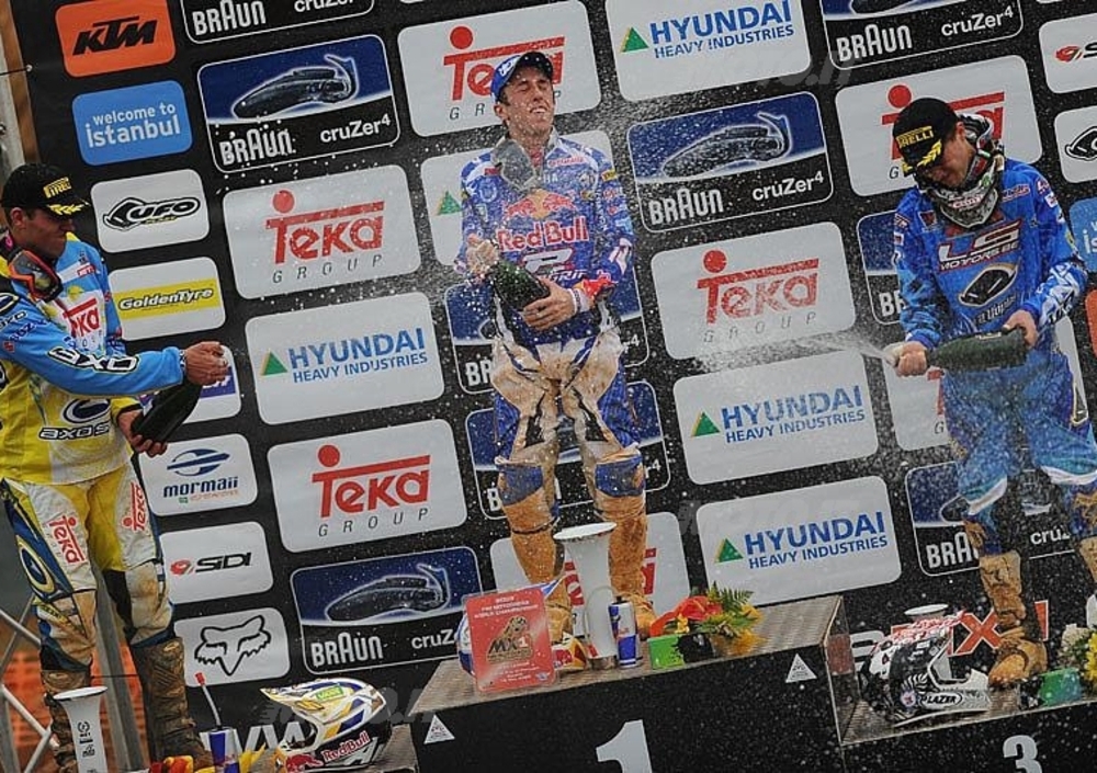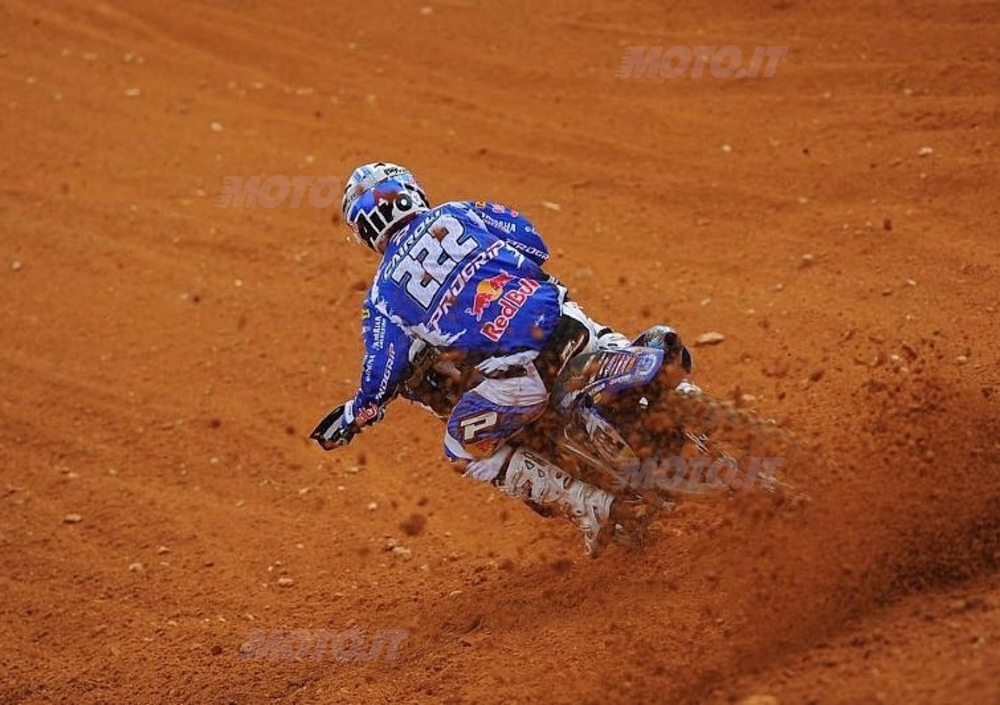 Dire Agueda e dire Cairoli oramai è un tutt'uno. Dal 2004 che si gareggia su questo circuito e per ben quattro volte Antonio ha fatto segnare un doppio successo sui tabellini delle gare. Cha a Cairoli la pista piacesse non era un mistero e tutti avevano gia pensato di dover far i conti con l'ex campione del mondo della MX2 che, con la piccola cilindrata, su questa pista aveva fatto sempre vedere ottimi "numeri". Ma la MX1 è tutt'altra cosa, ipotizzavano gli scettici. Scettici che si sono dovuti ricredere allo strapotere di Cairoli. In gara 1 ha lasciato sfogare Philippaerts e De Dycker per poi, con David auto eliminatosi a causa di una scivolata, andare a prendere il comando e vincere indisturbato. Nella seconda manche invece Tony ha pensato a vivacizzare la gara, effettuando una partenza a circa metà gruppo. Ottavo al primo passaggio e quarto a metà gara, con un ritardo di oltre 15 secondi da De Dycker che guidava la corsa, Tony ha messo la "marcia in più" per andare a recuperare il terreno perso nelle fasi iniziali ed andare a siglare un'ulteriore doppietta. Doppietta storica che permette al campione messinese di eguagliare il record di vittorie di Alessio "Chicco" Chiodi che con 27 GP vinti (26 in 125 ed 1 in MX2) era, fino ad ora, l'italiano capace di aggiudicarsi più vittorie nel motocross. Doppietta comunque tinta di "giallo" se cosi possiamo dire, dato l'episodio che ha caratterizzato e che comunque farà discutere a lungo, il giro numero 10 della seconda manche. Cairoli, in rimonta su Philippaerts e Desalle al momento in lotta per la seconda e terza posizione, ha attaccato David nel tratto delle "wave" riuscendo a percorrere la discesa successiva alla sinistra dell'avversario precedendolo nell'ingresso in curva. Avversario che però aveva scelto la strada più lunga (esterna) ma più veloce e che si è catapultato in curva ad una velocità impressionante. La stessa manovra (sorpasso di Cairoli e risposta di Philippaerts) il pubblico l'aveva gia vista il giro precedente con Philippaerts che era riuscito a riprendersi la posizione, ma questa volta l'epilogo è stato diverso. La staccata di Cairoli, tirata al limite, ha scomposto la moto del furetto siciliano con la risultante che al momento dell'ingresso in curva, invece di prendere la traiettoria più interna, Cairoli ha tirato dritto per la tangente incrociando la traiettoria scelta da Philippaerts che proveniva dalla sua destra in piena velocità. Nel motocross che viene da destra non ha la precedenza di diritto e su questo "incidente" nemmeno i rilevamenti della polizia portoghese riusciranno a determinare eventuali cause e "colpevoli". Philippaerts a terra e Cairoli in piedi per miracolo è stata la risultante di questo "scontro fra titani". Senza nemmeno far spegnere la moto,Cairoli è ripartito come un razzo alla caccia di Desalle che nel frattempo cercava di prendere il largo mentre Philippaerts, nel rialzare la moto da terra ha accusato subito un gran dolore alla mano sinistra e si è capito subito che avrebbe desistito dal continuare la corsa. Rientrato ai paddock, il campione in carica ha preso immediatamente la via dell'ospedale per i controlli del caso. Controlli che hanno evidenziato la frattura della prima falange del dito indice sinistro che costringerà David a qualche giorno di riposo, se non tutta la settimana, prima della prossima gara in Spagna. Detto comunque della vittoria di Cairoli che in quattro giri a fatto un sol boccone di Desalle e De Dycker, rimane l'amaro in bocca a tutti per il pesante "zero" accusato in classifica da Philippaerts e per le precarie condizioni con le quali si presenterà il campione alla prossima gara che si disputerà da qui a sette giorni. Cairoli sul gradino più alto del podio, con la tabella rossa di leader della classifica ben stretta in mano, è stato accompagnato da De Dycker (secondo) e Desalle alle sue spalle.