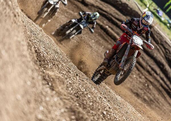 Gara 1 era stata controversa. Herlings imprendibile, Prado di rincorsa, non grandi sensazioni sulla moto. Quarto in partenza, via Seewer (holeshot) ma niente da fare contro Prado, tanto meno contro Herlings, che all’ottavo giro passa Prado e va a vincere solitario. È stato allora che l’intera Squadra di Gajser è decollata, cercando e trovando soluzioni, rassicurando il Pilota, dando al leader la mano vincente per la seconda manche. Una grande Squadra, è evidente. Gara 2 cambia tutto. Secondo dietro a Prado dalla prima curva all’ottavo giro, sempre a caccia. Poi il sorpasso e il controllo, fino al traguardo. Alle sue spalle Prado e Vlaanderen, Yamaha. Herlings parte male, cade e scade ulteriormente al 17° posto. Poi furibondo sorpassa a grappoli per tutta la manche, ultima “vittima” l’esaltante Romain Febvre, Kawasaki, rientro straordinario dopo 5 Gran Premi. Herlings è quarto, terzo nel GP. Guadagnini, Husqvarna, e Bonacorsi, Honda, sono appena fuori dai dieci.