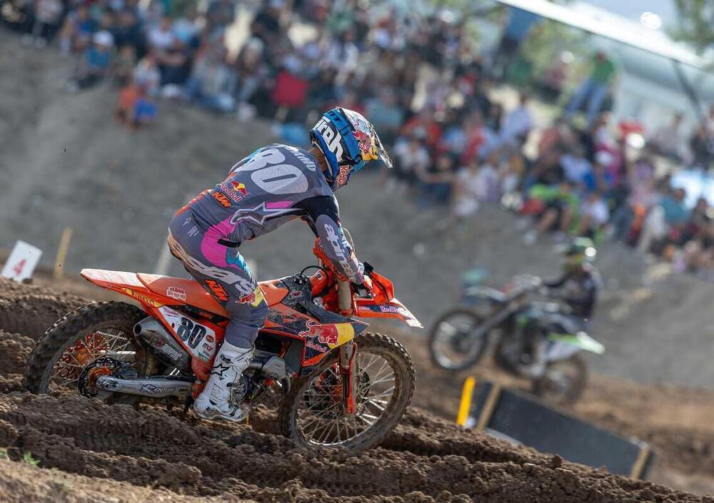 MX2. Non c’è storia e non c’è verso. Lucas Coenen ha vinto tutto quel che c’era da vincere sabato sera e domenica. Qualifying Race, Gara 1 e Gara 2. Nessuna obiezione, seppure al sabato avevano provato a proporsi Mikkel Haarup, Triumph, e Liam Everts, Red Bull KTM. In Gara 1 Coenen ha vinto dopo un lungo duello con Simon Laengenfelder, Red Bull GasGas, Everts terzo e Kay de Wolf quarto, e in Gara 2 con un assolo totale e con una sola azione di disturbo proprio del compagno di squadra e leader del Mondiale, Kay de Wolf. Haarup terzo e Langenfelder quarto. Coenen, De Wolf e Laengenfelder sul podio di Gran Premio di Afyon (dove si è già vista questa classifica?). “Non c’è verso” vuol dire che Andrea Adamo non ha ancora vinto la sua Gara della staffa prima di cedere il Titolo di Campione del Mondo a un cugino di Marca. Il siciliano ha ancora due occasioni per accontentarci (e accontentarsi), il Gran Premio di Shangai, giusto il tempo del volo verso la Cina, e il Gran Premio ultimo di Cozar, Spagna.