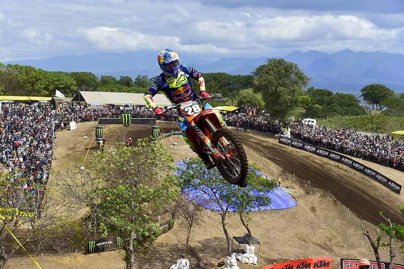 Il 12esimo round del Campionato Mondiale FIM Motocross ha solo due nomi Tim Gajser del Team HRC e Tom della Red Bull KTM Factory Racing Vialle. Sull'isola di Sumbawa, in Indonesia, hanno vinto rispettivamente entrambe le manche della MXGP e della MX2. Un weekend perfetto per i due piloti. La prima manche della MXGP si apre con la Fox Holeshot di Gajser. Brutta partenza invece per Ben Watson del Kawasaki Racing Team MXGP che ha colpito il cancelletto. Gajser ha condotto con alle spalle Jorge Prado, Ruben Fernandez, Glenn Coldenhoff e Romain Febvre, poi retrocesso dopo un contatto con Pauls Jonass. Un paio di giri dopo, anche Jonass è caduto ed è ripartito al nono posto. Mattia Guadagnini ha concluso la gara al settimo posto. Gajser ha tagliato il traguardo in testa davanti a Prado, Fernandez, Coldenhoff e Fernandez.