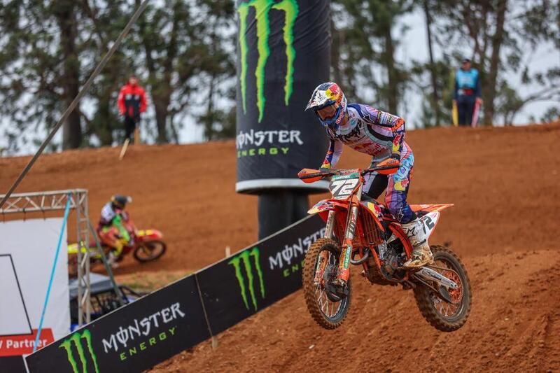MX2. Facile. Esaltante (se riusciamo a dimenticare per un momento le vicende in cui è invischiato il Campione del Mondo in carica, Andrea Adamo). È il week end benedetto di Liam Everts, che non lascia niente a nessuno. È la tripletta perfetta, esplosa a colpo sicuro in un crescendo fulminante, al momento giusto. Libere e cronometrate decenti, nessuna pietà quando in ballo ci sono punti da portare a un carniere partito con l’handicap del forfait Argentina. 10 punti dalle Qualifying, 25 e 25 dalle due Gare. En plein e decollo.