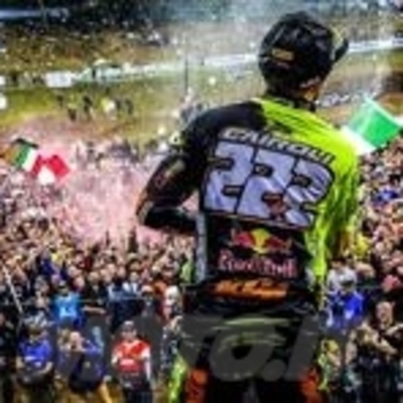 Amico del Campione del Mondo Tony Cairoli, Calderoni ha deciso di omaggiare l'amico indossando il suo casco e esibendosi in acrobazie pazzesche con il suo jetski all'interno di una pozza d'acqua, che normalmente viene utilizzata per alimentare il sistema di irrigazione della pista di Maggiora. Backflip e frontflip hanno fatto impazzire e lasciato a bocca aperta gli spettatori presenti sulla pista, che tutto si sarebbero aspettati tranne di vedere una moto d'acqua esibirsi in uno show improvvisato in una pista di Motocross.