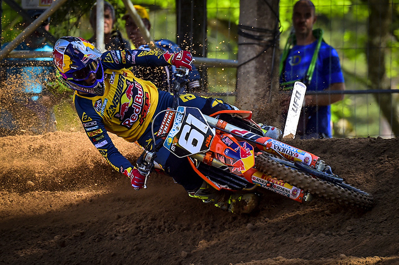 4° Romain Febvre davanti al compagno di squadra Jeremy Van Horebeek, mentre l’ufficiale HRC Tim Gajser non è riuscito a fare meglio di 7°; è andata però peggio al suo nuovo compagno di scuderia australiano Todd Waters, venuto appositamente dagli Stati Uniti dove ricopriva il ruolo di collaudatore Honda per sostituire Brian Bogers visti i tempi lunghi previsti per il recupero dell’olandese, protagonista di una pesante caduta che gli ha procurato la sospetta frattura della clavicola; 13° Alex Lupino.