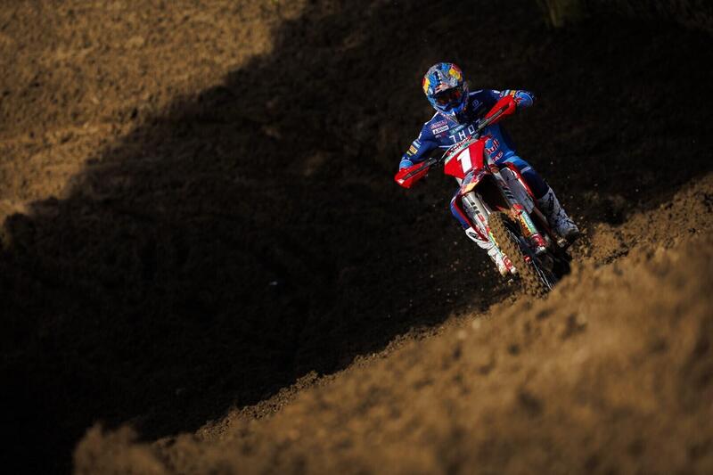 In MX2 è un (mezzo) sospiro di sollievo. Andrea Adamo, GasGas, che ha vagamente latitato al mattino, chiude al secondo posto, sicuro e veloce. Poco importa se a vincere è il Campione in testa al Campionato, Kay de Wolf, Husqvarna. Laengenfelder, GasGas, e Lucas Coenen, dai quali ci si poteva aspettare di più, si ingarbugliano indietro, e lo stesso fa Ferruccio Zanchi, Honda, che è veloce ma non ancora precisissimo. Adamo tiene dietro il compagno di Squadra Liam Everts, di un soffio, e Mikkel Haarup, tornato alla carica con la Triumph. Non è questa Qualifying che cambia le carte del Campionato, in entrambe le classi.