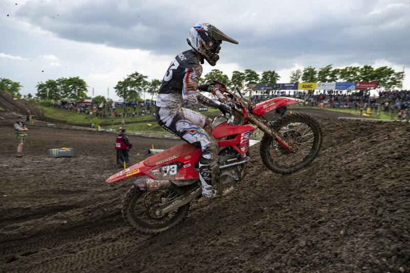 Teutschenthal, Germania, 1 Giugno. Ancora pioggia, ancora maltempo. Dopo poco non si vedono più il numero delle tabelle, talvolta si distingue appena quella rossa, ma i numeri dei Piloti, la loro bravura è evidente nei tratti caratteristici della classe dei migliori. Le libere e le cronometrate della MXGP parlano più di Jorge Prado, KTM, che si impone in entrambe, che di Tim Gajser, Honda, “appena” quarto e secondo. Nella MX2 Kay de Wolf, Husqvarna, si aggiudica le libere ma si inchina a Simon Laengenfelder, GasGas, nelle “crono”. C’è Herlings, Febvre sbaglia un po’ di tutto, latitano gli italiani ad eccezione di Zanchi che si propone.