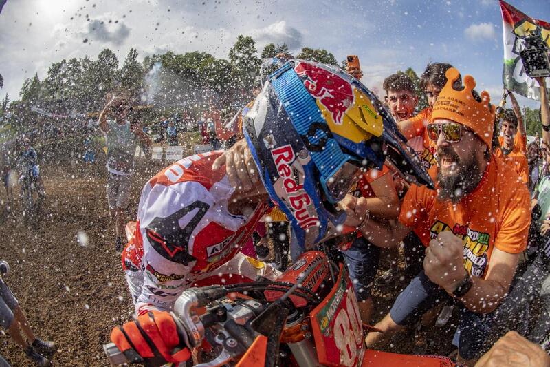 La MXGP è ormai meno sorprendente. O forse no, perché c’è un Pilota, un Asso, un fuoriclasse che non la smette di lasciarti di stucco. È Gajser. Lo sloveno si lancia come una furia e prende immediatamente il largo. Incredibile. Imprendibile, intrattabile e non negoziabile a bordo di quella piccola astronave che è la nuova Honda. Tanto è fulmineo Prado in condizioni di asciutto, tanto è istantaneo Gajser in condizioni come queste. È il suo fil rouge dell’anno. La gara è finita alla fine dell’holeshot. Gajser va via solitario, passeggia e stacca, gli altri passeggiano, sopravvivono e si staccano. Secondo Herlings, terzo Bogers, bravo Brian “riserva” Fantic, Prado è sesto dopo aver recuperato una posizione. Guadagnini e Bonacorsi nei 10.