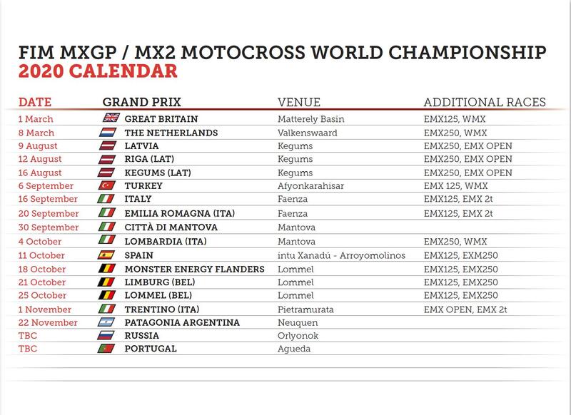A meno di un mese di distanza da quello che sembrava il calendario finale della MXGP 2020 arrivano ancora cambiamenti alle prove del Mondiale Cross, ma soprattutto viene annullato il MXoN assieme alla prova di Winchester, che viene sostituita da una gara a Mantova.