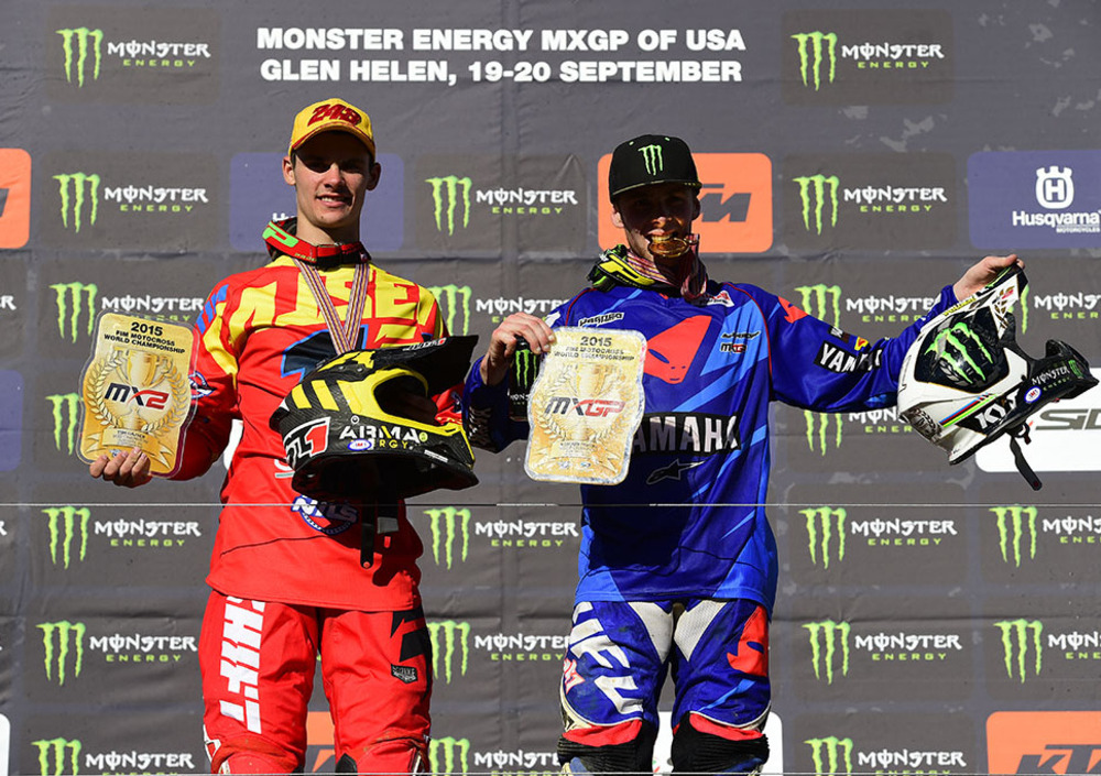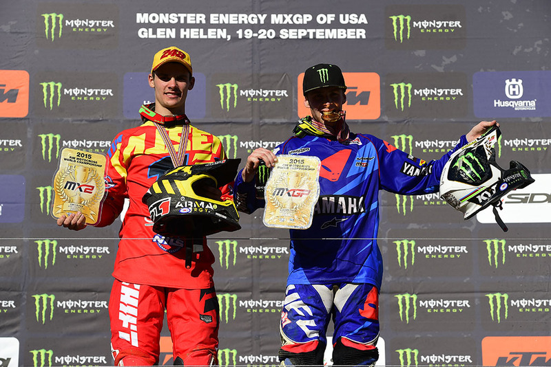 La lotta al vertice della MX2 si è invece conclusa in favore di Tim Gajser che forte dei 18 punti di vantaggio su Pauls Jonass ha mantenuto la concentrazione e grazie al 4° posto assoluto si è aggiudicato il suo primo titolo iridato. Il rivale lettone non è riuscito a fare meglio di 9° assoluto, e già dopo la prima manche in cui aveva perso la sfida nel testa a testo con il pilota della Honda le possibilità di far suo il titolo si erano ridotte ad un lumicino.