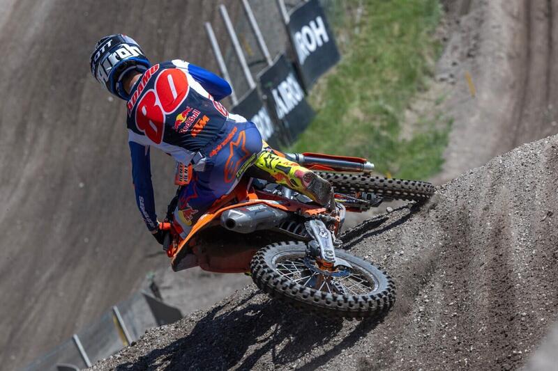 … parte benissimo in Gara 2. Tanto bene che il tedesco non ha difficoltà alcuna a creare un vantaggio sensibile nel quale vincere la sua seconda Gara dopo l’inaugurale manche in Patagonia. Caduto in partenza Kay de Wolf, il podio diventa una questione tra Andrea Bonacorsi, Monster Energy Yamaha, e Liam Everts, Red Bull KTM. Sul finale Everts riesce a passare Bonacorsi. Con il secondo posto di Gara 2 aggiunto al terzo di Gara 1, Everts III diventa il vincitore del Gran Premio del Trentino della MX2. Il mezzo passo falso di de Wolf non incide troppo sulla classifica provvisoria dopo 4 Gran Premi della MX2. E dopo due settimane e due Gran Premi in Italia, il Mondiale MXGP si sposta in Portogallo per la quinta data di Agueda, 4 e 5 Maggio.