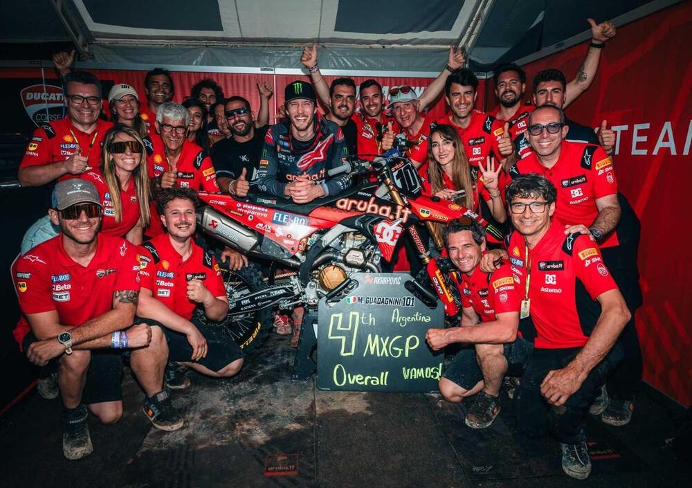 C’è qualcosa di ancora più stupefacente, però, anche in questa MXGP un tantino “provvisoria”. C’è la stoica resistenza di Lucas Coenen, KTM, tra settimo e ottavo in entrambe le manche, per un sesto posto che è preziosissimo in proiezione futura, viste le condizioni in cui il diciottenne enfant prodige ha corso. E c’è il quarto posto di Mattia Guadagnini, per due volte in odore di podio e quarto nel Gran Premio di esordio di Ducati. Uniti all’holeshot di Jeremy in Gara 1 e all’holeshot di Mattia in Gara 2, sono prova di uno stato di cose probabilmente al di là delle aspettative. Paolo (Ciabatti, tanto per restare nel confidenziale) può ben essere orgoglioso e confidente, e con lui tutta la forza Ducati, per un risultato che al debutto ha il sapore di una vera e propria promessa. A meno che Paolino non abbia minacciato Jeremy e Mattia di farli rientrare a nuoto verso l’Europa, il che con tutta probabilità impedirebbe loro di arrivare in tempo per il secondo MXGP di Castilla la Mancha, Cozar, 15-16 Marzo, lo status tecnico e di motivazione sono il momentum da fissare nel futuro.