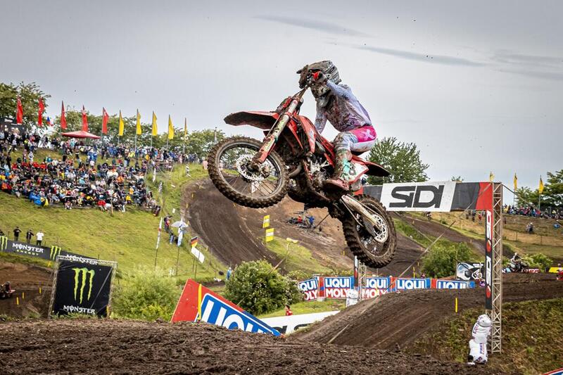 Teutschenthal, Germania, 1° giugno. Metà Campionato del Mondo è in archivio. Anche Teutschenthal è in archivio, e direi che possiamo essere più che soddisfatti. Attori meravigliosi, il palcoscenico-“corridoio” del Talkessel è stato prodigo di belle interpretazioni. In ordine sparso. Valerio Lata, Honda HRC, ha vinto la prima manche di un GP. La Qualifying Race, d’accordo, ma è sempre una prima volta e sono sempre 10 punti mondiali, in questo caso importantissimi. Jeffrey Herlings, KTM, è tornato alla vittoria aggiudicandosi la MXGP e sale a quota 108 GP vinti, fantastico. Lucas Coenen, che ha vinto “solo” Gara 1, rincorre sempre più da vicino Romain Febvre, Kawasaki, il leader. Prima ancora, Kiara Fontanesi, GasGas, ha surclassato la concorrenza femminile e vinto il GP WMX. Poi, e soprattutto, Andrea Adamo, KTM, ha vinto Gara 1, poi ha vinto il Gran Premio di Germania, quarto successo di stagione, e infine è passato al comando della graduatoria del Mondiale MX2. Tabella rossa per il Campione del Mondo 2023 completamente rilanciato.