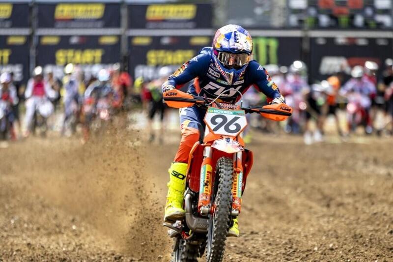 Loket, Cechia, 26 Luglio. Libere, qualifiche, Qualifying Race. Nel vivo del Gran Premio della Repubblica Checa, circuito Loketske Serpentiny, per la 14ma prova del Mondiale MXGP e MX2. Duelli, confronti, sorprese (relative, a questo punto, se no si chiamano colpi di scena).