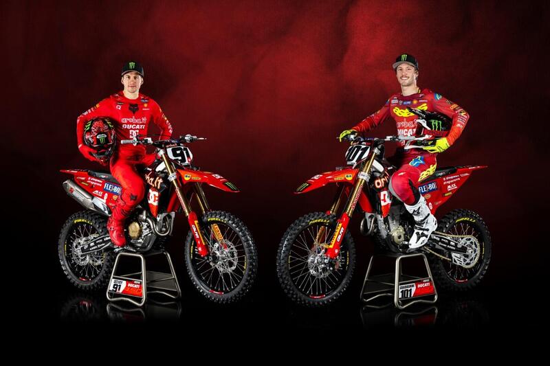 Ecco la mappatura sintetica delle forze in campo. Precedenza di benvenuto al Aruba.it Ducati Factory MX Team, che ha presentato la Squadra insieme alle armate SuperBike e MotoE nel regno del cloud italiano, Aruba. Jeremy Seewer e Mattia Guadagnini, questo lo sapevamo, così come registriamo il buon risultato generale di Mantova e Montevarchi come null’altro che una prova generale di posizionamento dell’intero progetto. La Desmo 450MX è un’evoluzione decisa della Moto che è scesa in campo per la prima volta nel 2024, l'una tantum di Cairoli a Arnhem, e che ha vinto l’Italiano con Alessandro Lupino, sotto la guida di Paolo Ciabatti, del reparto corse di Ducati e di Maddii Racing. Seewer ha esperienza, 4 piazzamenti Mondiali nella categoria e motivazione alle stelle dopo la insoddisfacente stagione 2024. È il Pilota giusto per portare al massimo lo sviluppo e la competitività della nuova Ducati. Da un Guadagnini ristabilito e con la memoria alle imprese MX2 che va sfumando, si dovrebbe avere solo da… guadagnare. A proposito di Lupino, infine, la storia si ripete pantografata. Nell'Italiano, quest’anno, scenderà in campo la nuova Desmo 250MX, stesso Antonio Cairoli nel ruolo di ambasciatore e sviluppatore e stessa missione di conquistador affidata ad Alessandro Lupino.