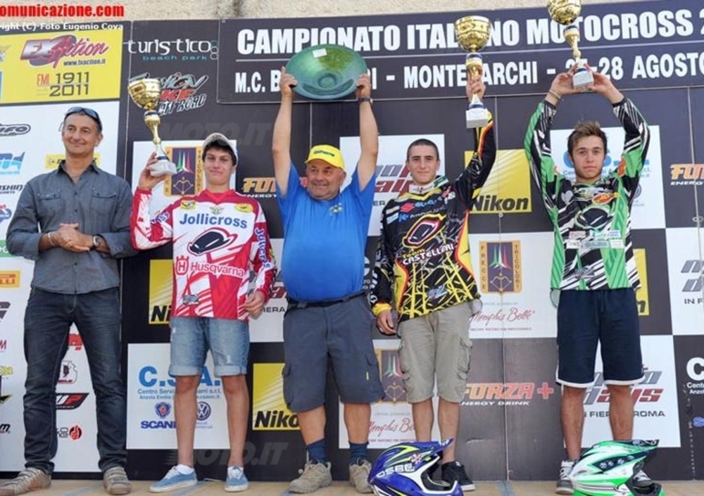 La classe MX1 si è vissuta su di un nuovo protagonista, Manuel Monni (Honda-Salucci Racing) che ha dimostrato un’ottima condizione dopo la sfortuna che l’ha tormentato quest’anno impedendogli di disputare degnamente il Mondiale di specialità. Manuel, neo papà di una bellissima bambina, è stato il dominatore nella massima cilindrata vincendo la prima e la seconda frazione in solitario. Con due secondi posti Cristian Beggi (TM-FG Racing) ha incrementato il suo vantaggio in campionato su Compagnone, oggi quarto di giornata. Ottima la prova di Federico Bracesco (Suzuki-Hobbymotor) arrivato sul terzo gradino del podio odierno.