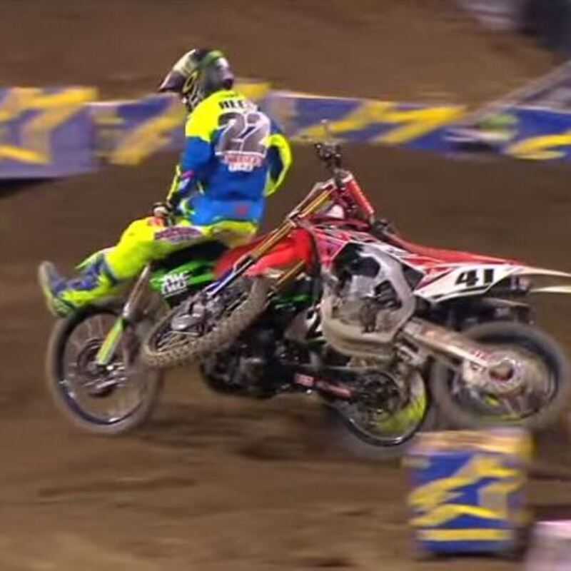 Al pilota Honda sono comunque bastati pochi giri per prendere il sopravvento ed involarsi verso la sua prima vittoria stagionale davanti a Dungey, autore di un bel recupero,che grazie al suo secondo posto consecutivo e alla defezione di Roczen, è passato in testa al campionato.