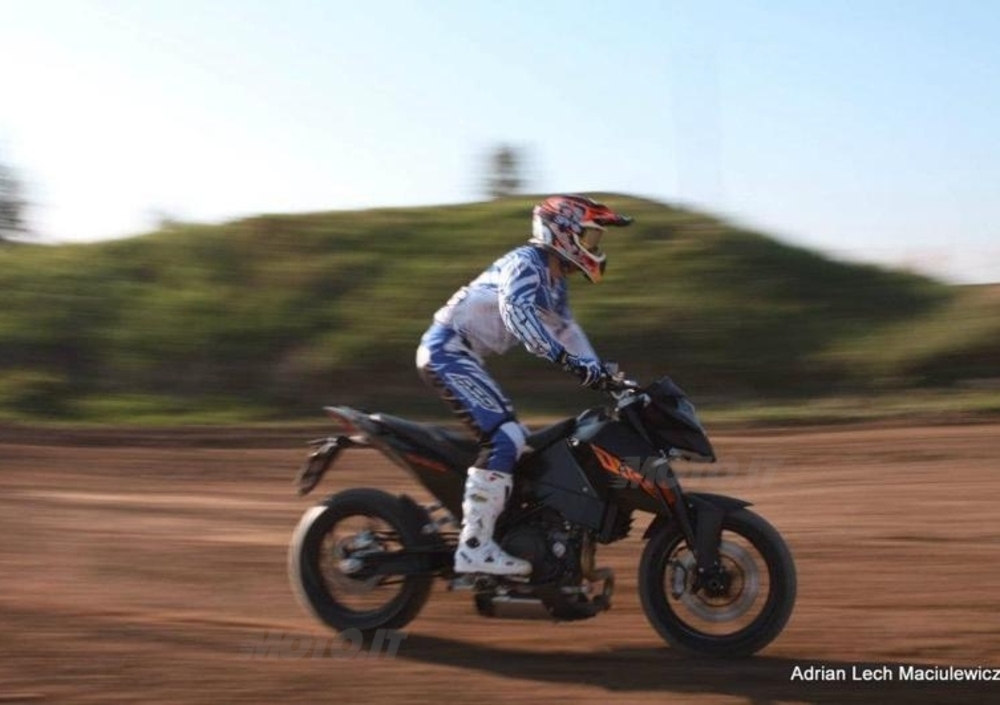 Dopo averlo visto al Ranch La Biscia, in compagnia di Valentino Rossi, ecco che Tony Cairoli ci mostra qualche suo scatto durante una sessione di allenamento, intento a provare le doti versatili della sua KTM Duke 690 in una pista da cross.