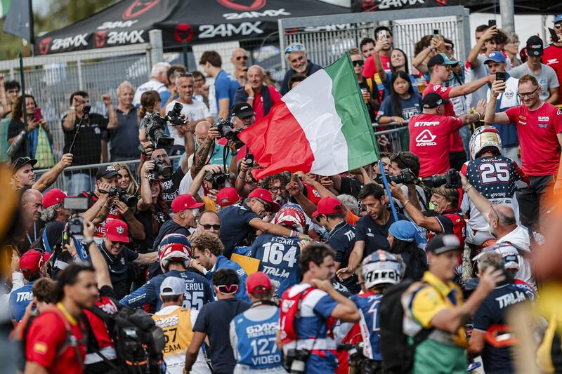 Bergamo, 29 Agosto. Vincere tutto non è da tutti. E non succede spesso. Ci sono state ere della 6 Giorni in cui una Nazione aveva una tale quantità di Campioni che la festa poteva durare per anni, lustri addirittura. Oggi il “sistema” è più equilibrato, e vincere tutto come ha fatto l’Italia al termine della 99ma FIM 6Days® Italia 2025, e come aveva fatto l’Italia nel 2021 a Rivanazzano, è comunque un’impresa epica, un exploit.