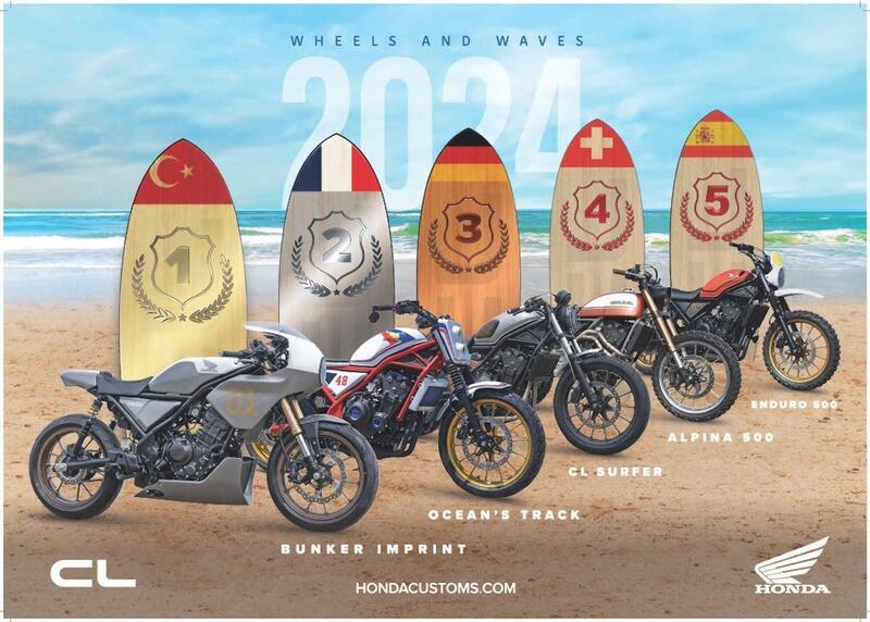 A completare il podio dell’Honda Customs 2024 è la tedesca ‘CL Surfer’ realizzata dalla concessionaria Honda Centre di Francoforte, serbatoio argento metallizzato, parafango anteriore e posteriore attraversati da una striscia blu, i semimanubri, un nuovo scarico e la sella in pelle marrone con cuciture a diamante per donarle un tocco distintivo.