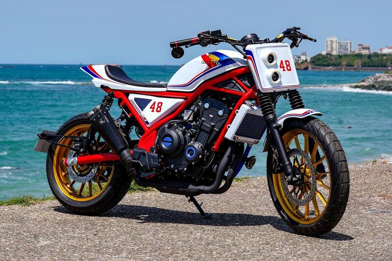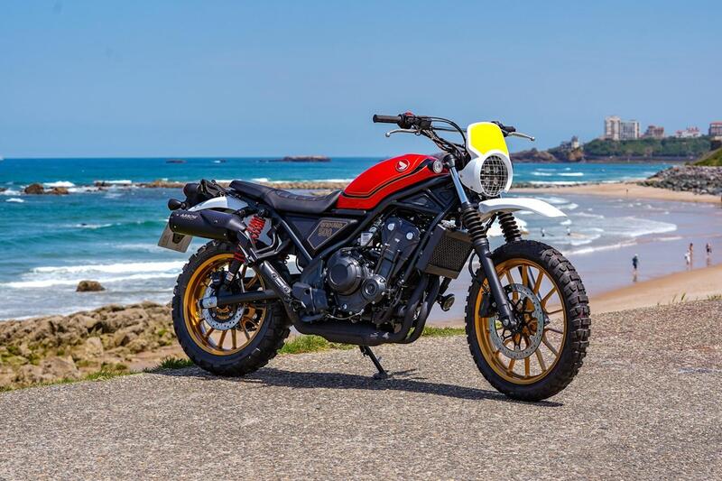 Rispetto alla CL500 di serie sono: il telaio e il forcellone verniciati di rosso, cerchi dorati, manubrio larghissimo con specchietti retrovisori alle estremità, fari a LED anteriori disposti in verticale con tabella portanumero e sella monoposto con codino rastremato.