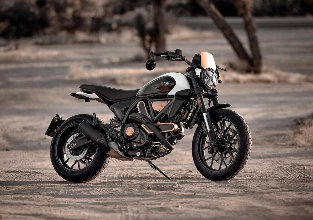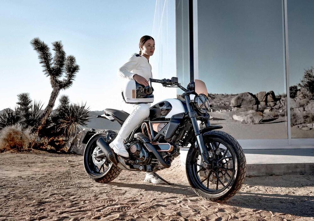 I classici stilemi di Scrambler – i gruppi ottici, il serbatoio, la forma della strumentazione – rimangono punti cardine, affinati nello stile e con contenuti tecnici più attuali. E il motore bicilindrico Desmodue da 73 cavalli, valorizzato dai nuovi coperchi frizione e alternatore, dalle cartelle copricinghia e dallo scarico che lascia il motore completamente a vista, è più leggero e dotato di Ride-by- wire, quickshifter e Riding Modes, per aumentare allo stesso tempo il piacere di guida e la sicurezza.